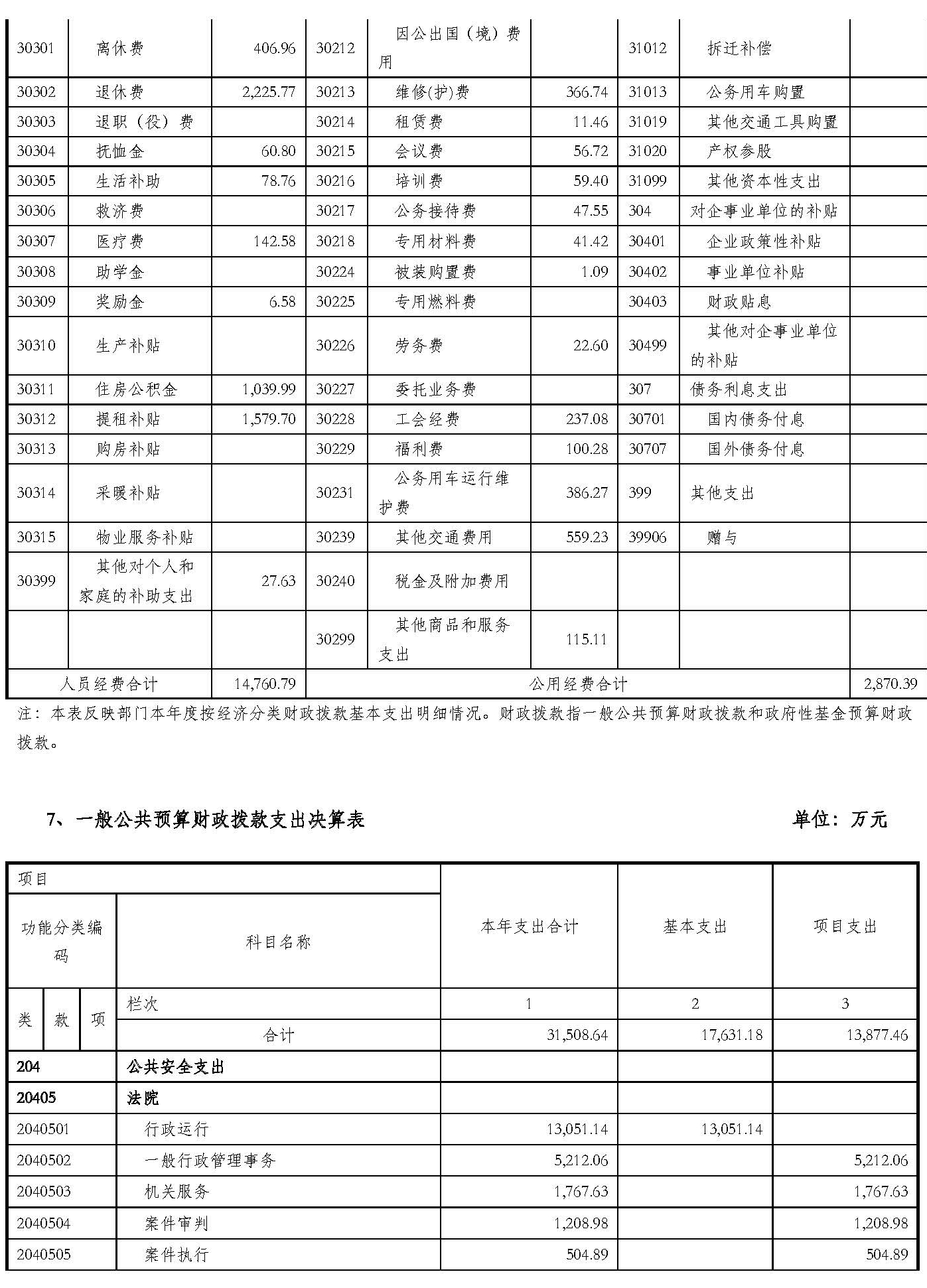 六、公共安全(类)法院(款)一般行政管理事务(项):指人民法院未单独设置项级科目的其他项目支出。