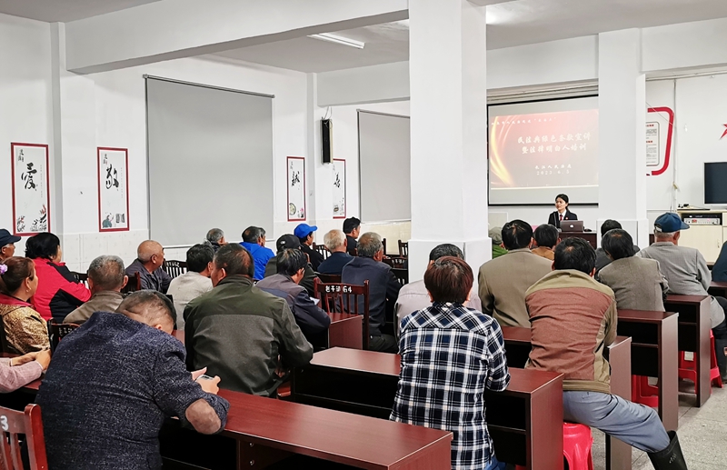 在郭园居委会会议室,法官助理方楠为人民调解员、承包专业户及村民代表开展主题为“民法典中的绿色条款”的“法律明白人”普法讲座。方楠围绕村民生活中常见的生态环境问题以及村民关注的耕地保护问题,对《民法典》中的绿色条款进行详细解读,建议村民们在日常生活中要做到“节约资源、保护环境”,遇到环境侵权问题时也要及时拿起法律武器维权。方楠还分享了“擅自改变耕地用途” “使用违禁农药造成污染”等典型案例,提醒大家守住耕地“红线”,以实际行动保护耕地、做到农地农用。